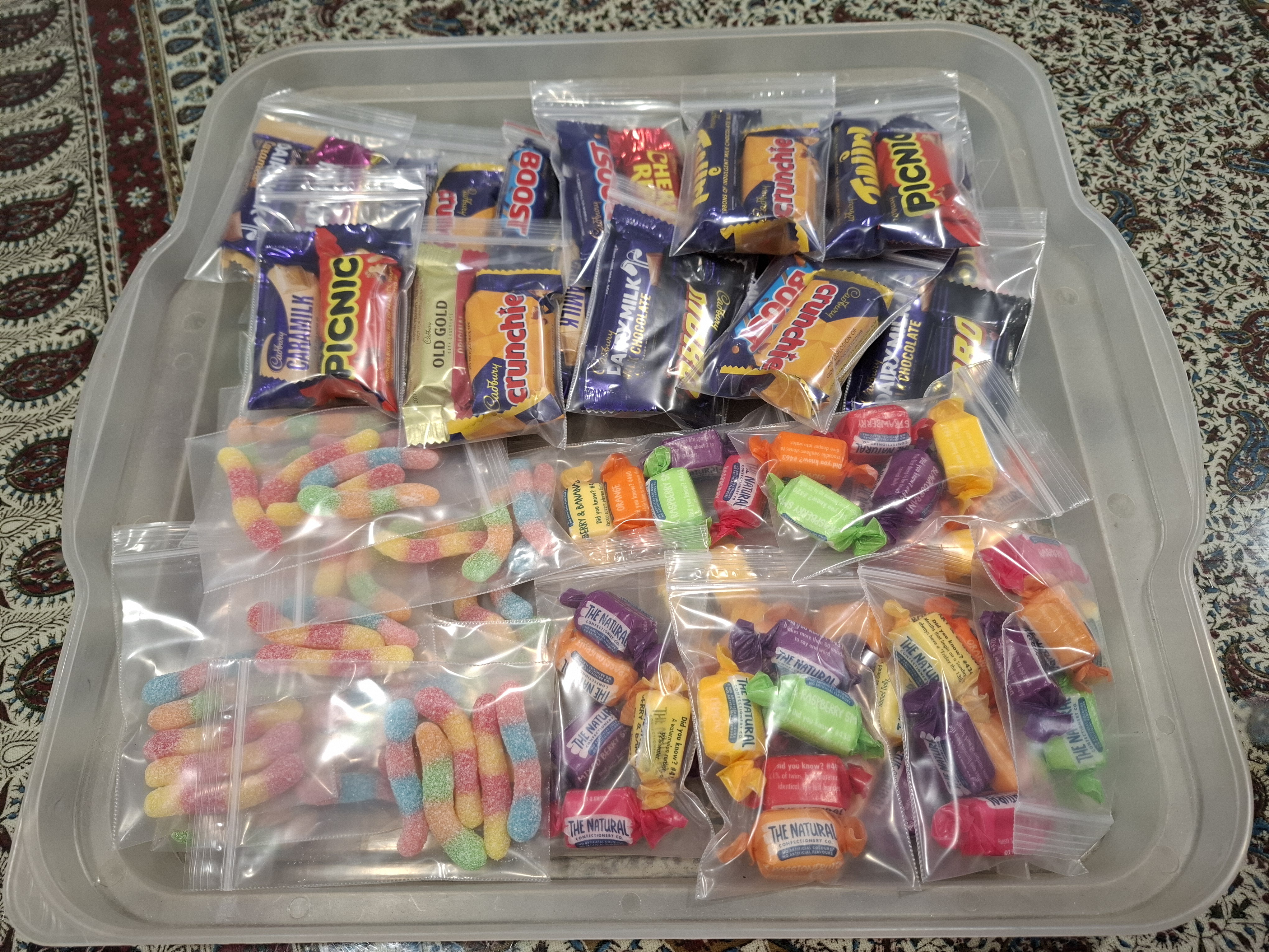 할로윈때 동네아이들이 우리집에 매년 오기 때문에 사탕과 초코렡을 사다가 봉지에 넣었다. 예전에는 사탕을 미처 사다두지 못해서 사탕 사먹으라고 $2달러씩 주기도 했는데 애들은 돈 보다 사탕을 더 좋아해서 매년 사탕 준비를 하게 되었다.