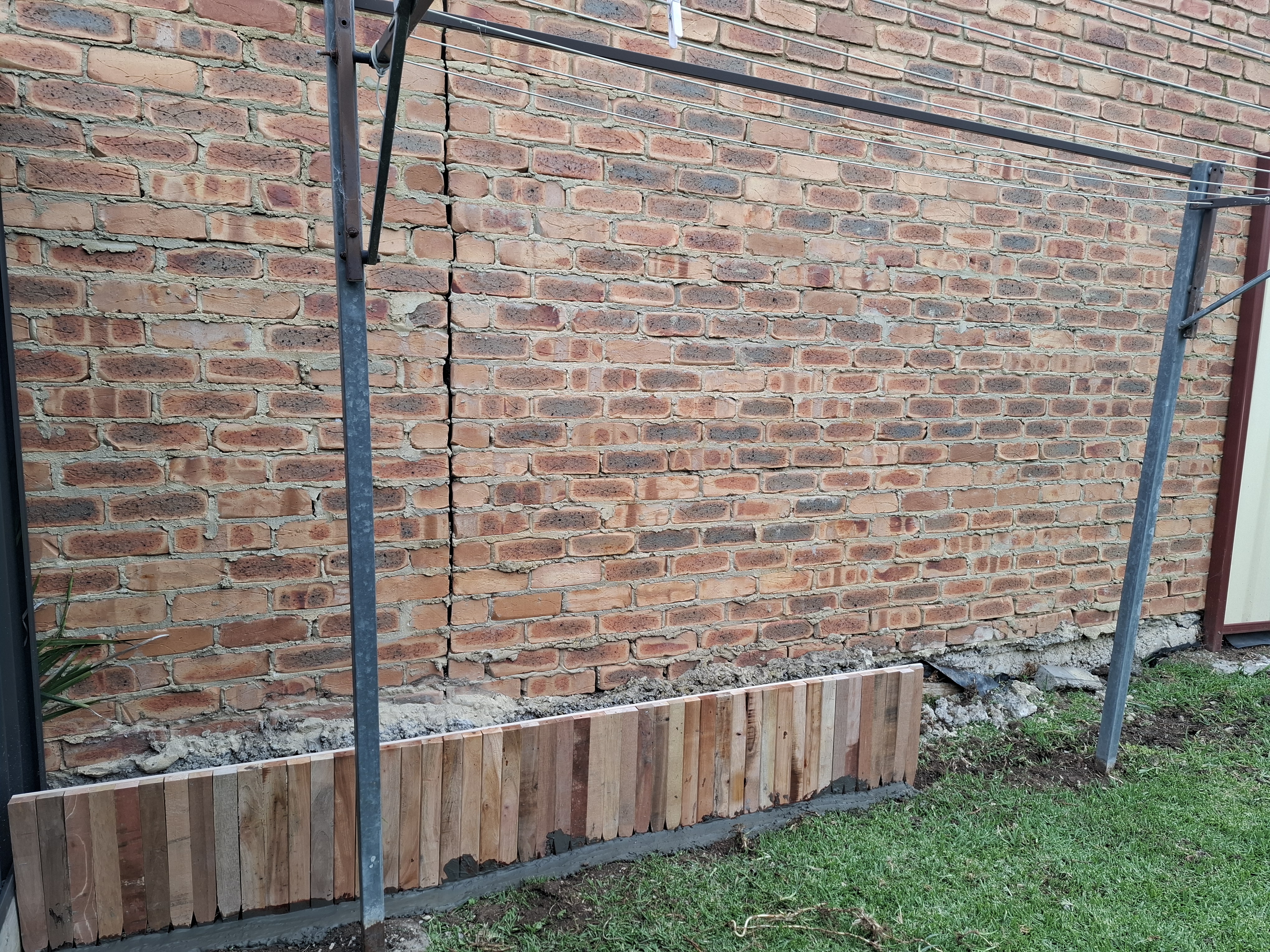뒷집 차고벽이 우리 집 뒷마당으로 조금 넘어왔는데 시멘트가 덕지덕지 붙어있어서 보기에 안 좋으니 가리라고 했다.