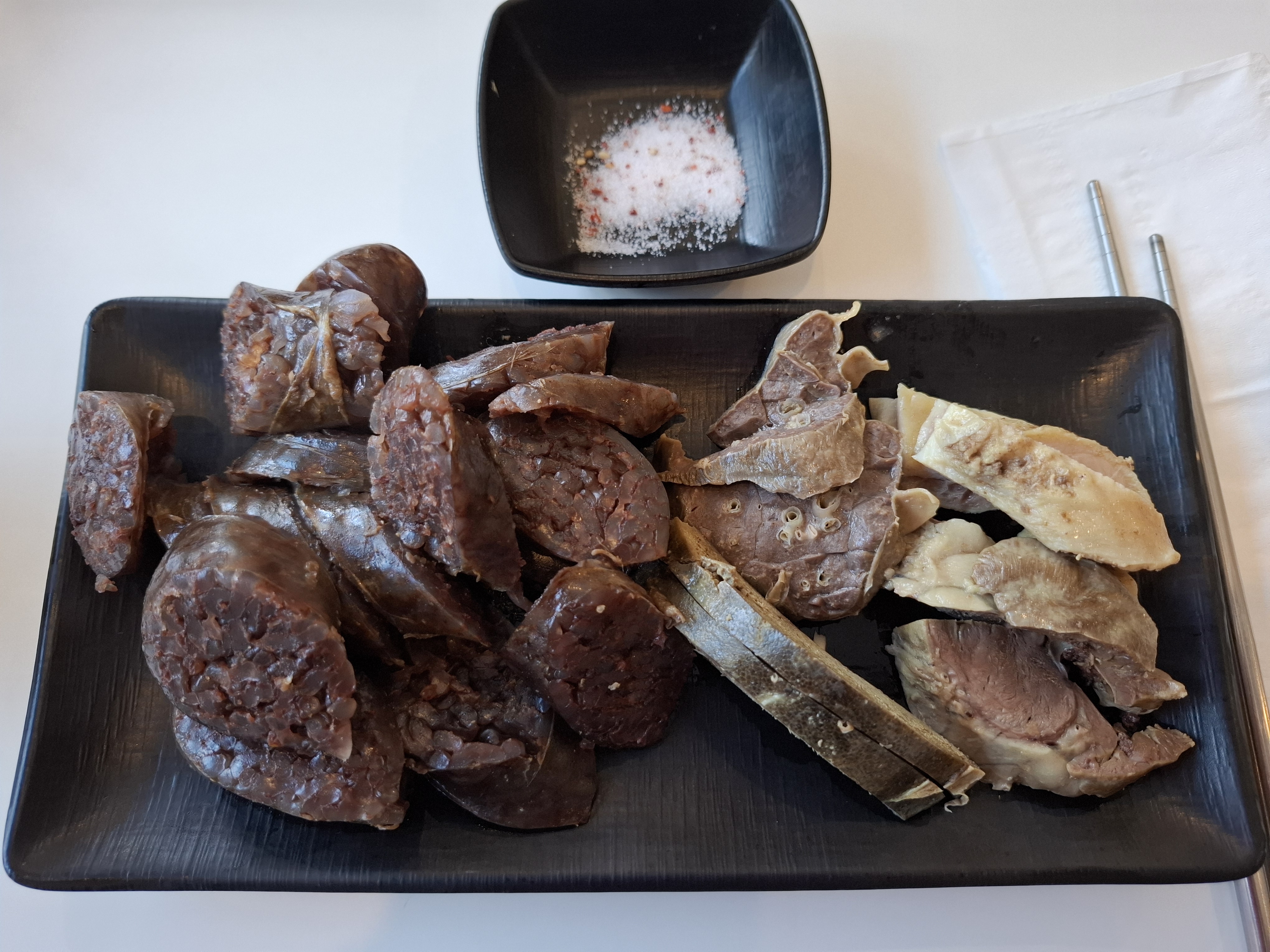 대략 차로 돌아다니다가 점심을 먹으러 한국분식점에 갔다. 남편은 우동, 나는 순대.
