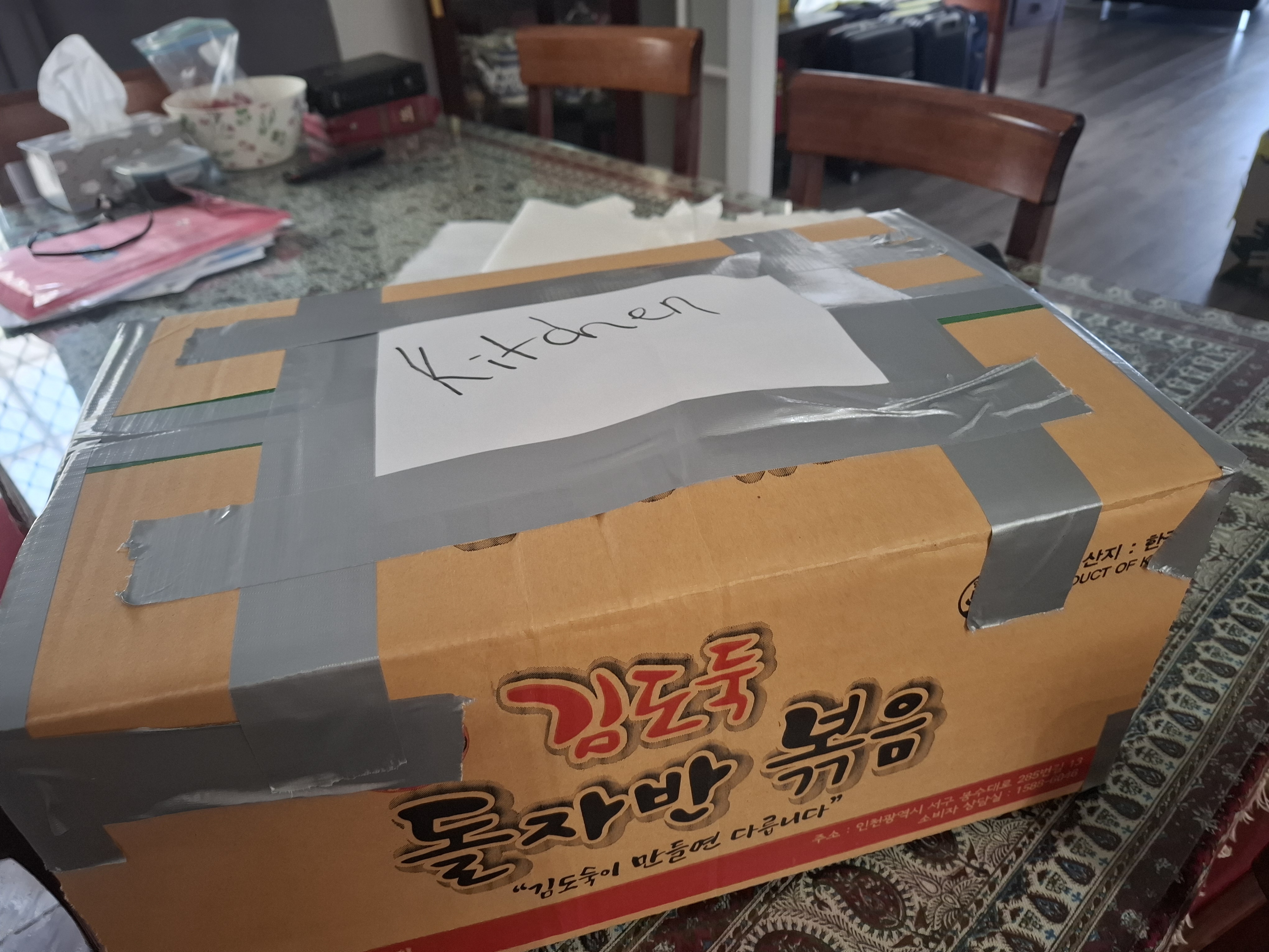 박스에 넣어 테이프로 마감을 하고 이름표를 붙였다.