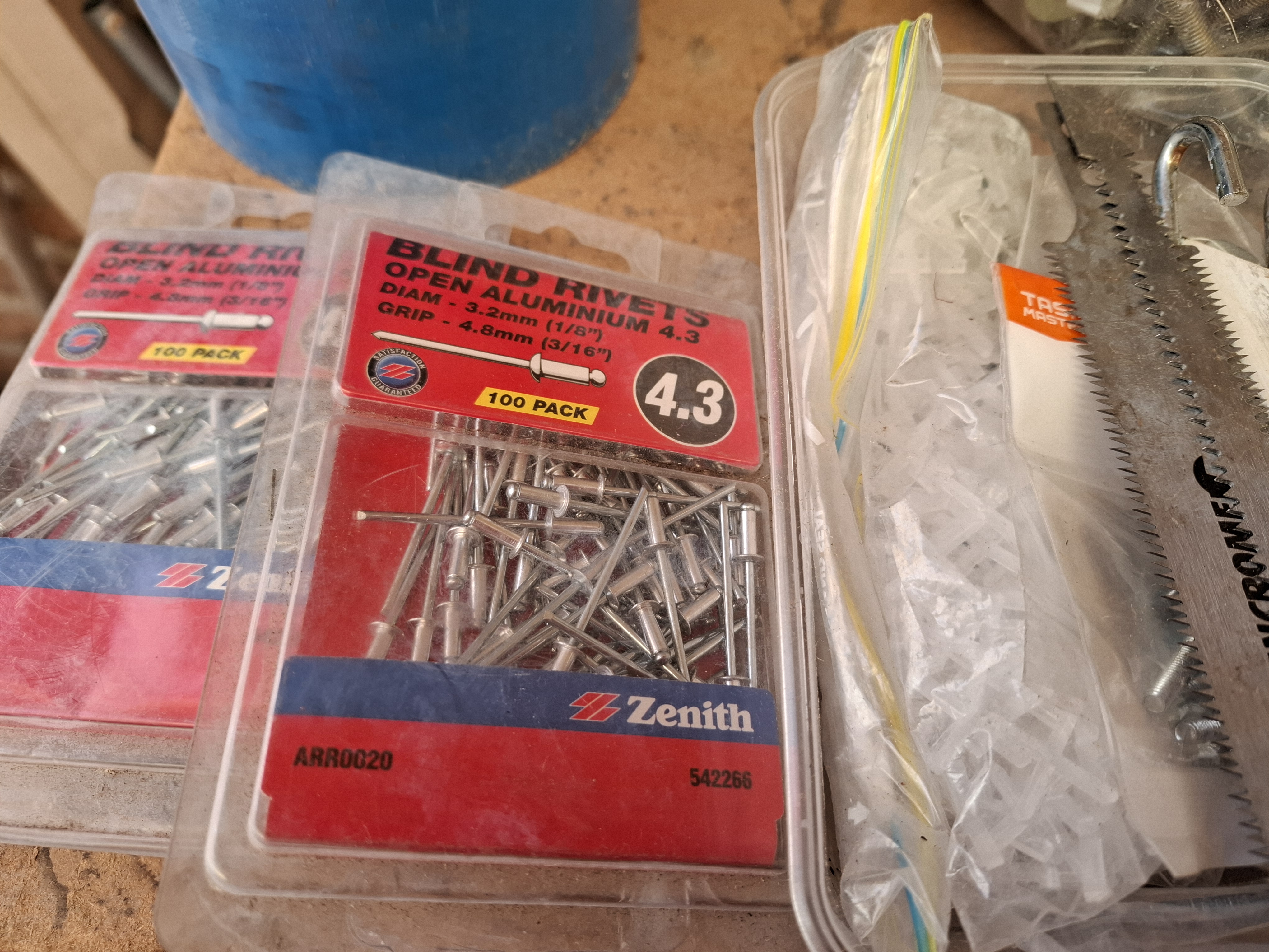 리벳이란 못 들이다. 리벳건이 있어야 쓸 수 있다. 옆에는 타일용 재료들.