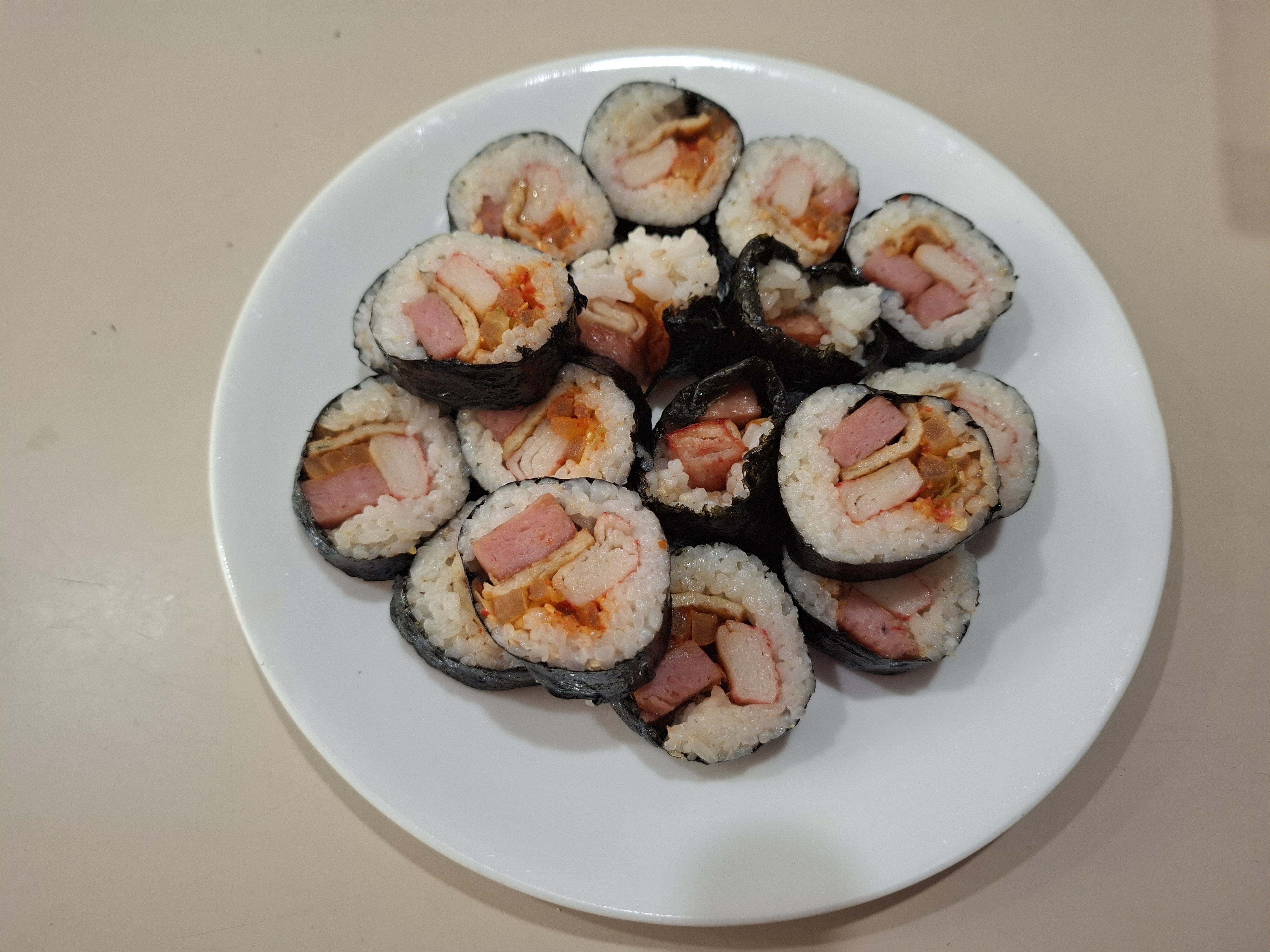 아침에 김밥 싸서 남편 골프 가는데 챙겨주고 점심용으로 2줄 챙겼다.