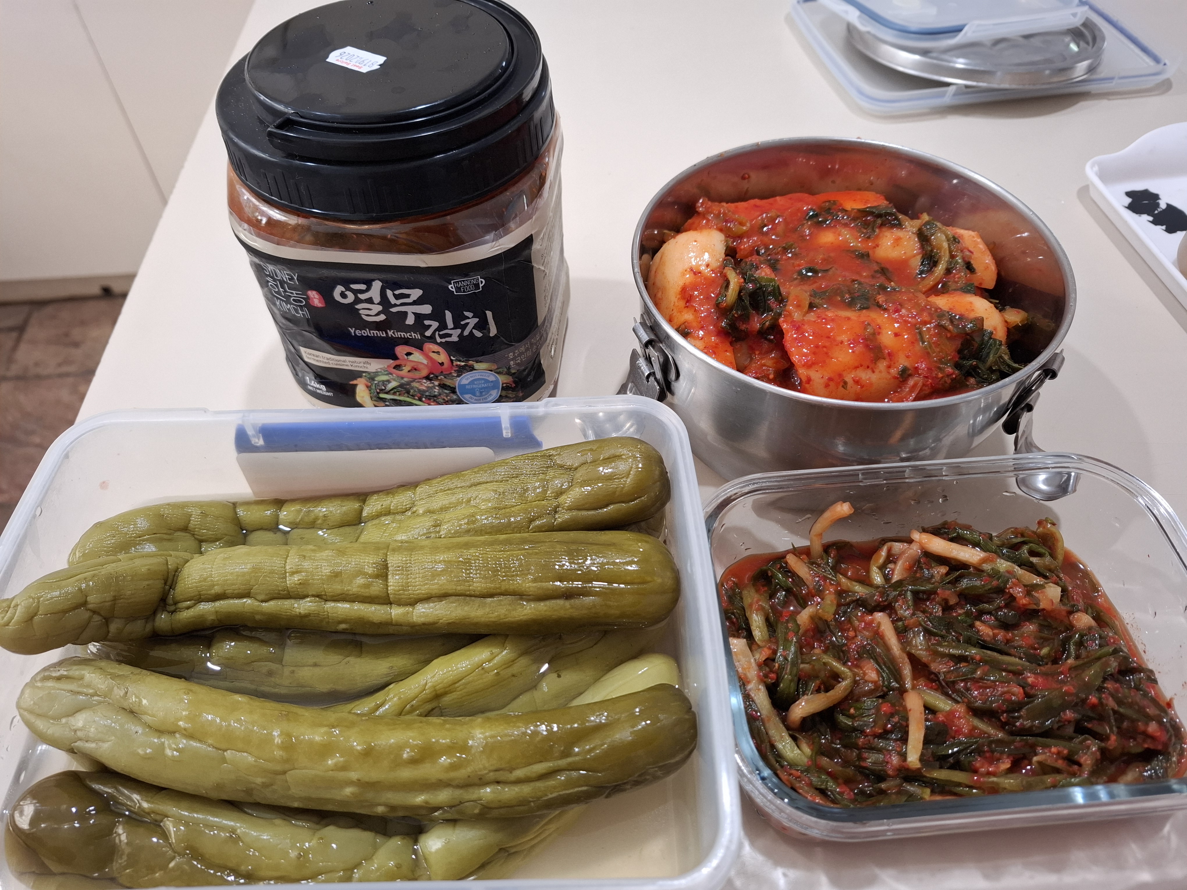 어제 한국식품점에서 김치를 사왔다. 달랑무김치, 파김치, 오이지, 열무김치.