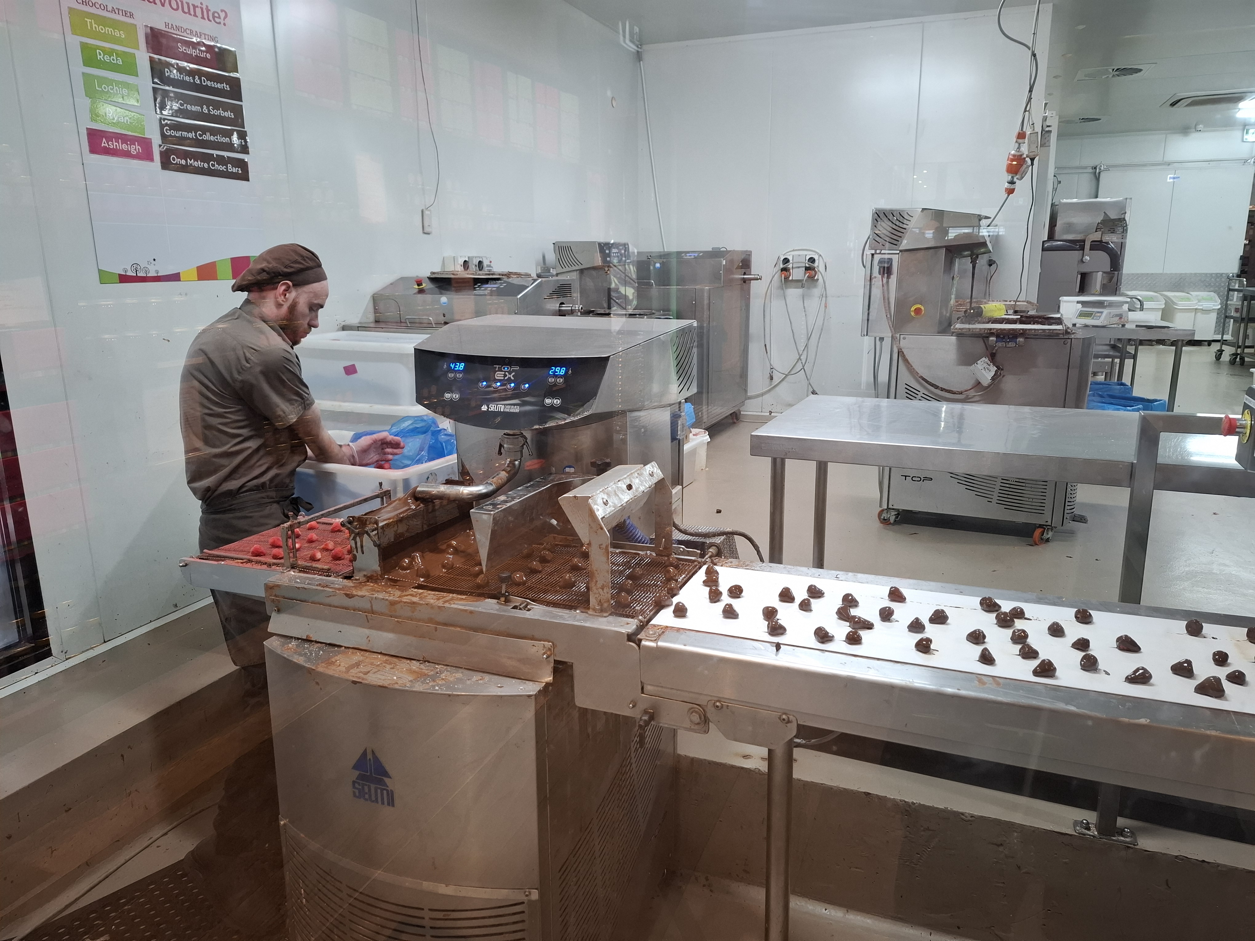 프랑스와 벨기에 초코렡 전문가들이 와서 초코렡을 만드는 공장으로 사람들이 볼 수 있게 공장 앞을 유리로 만들어놓았다.