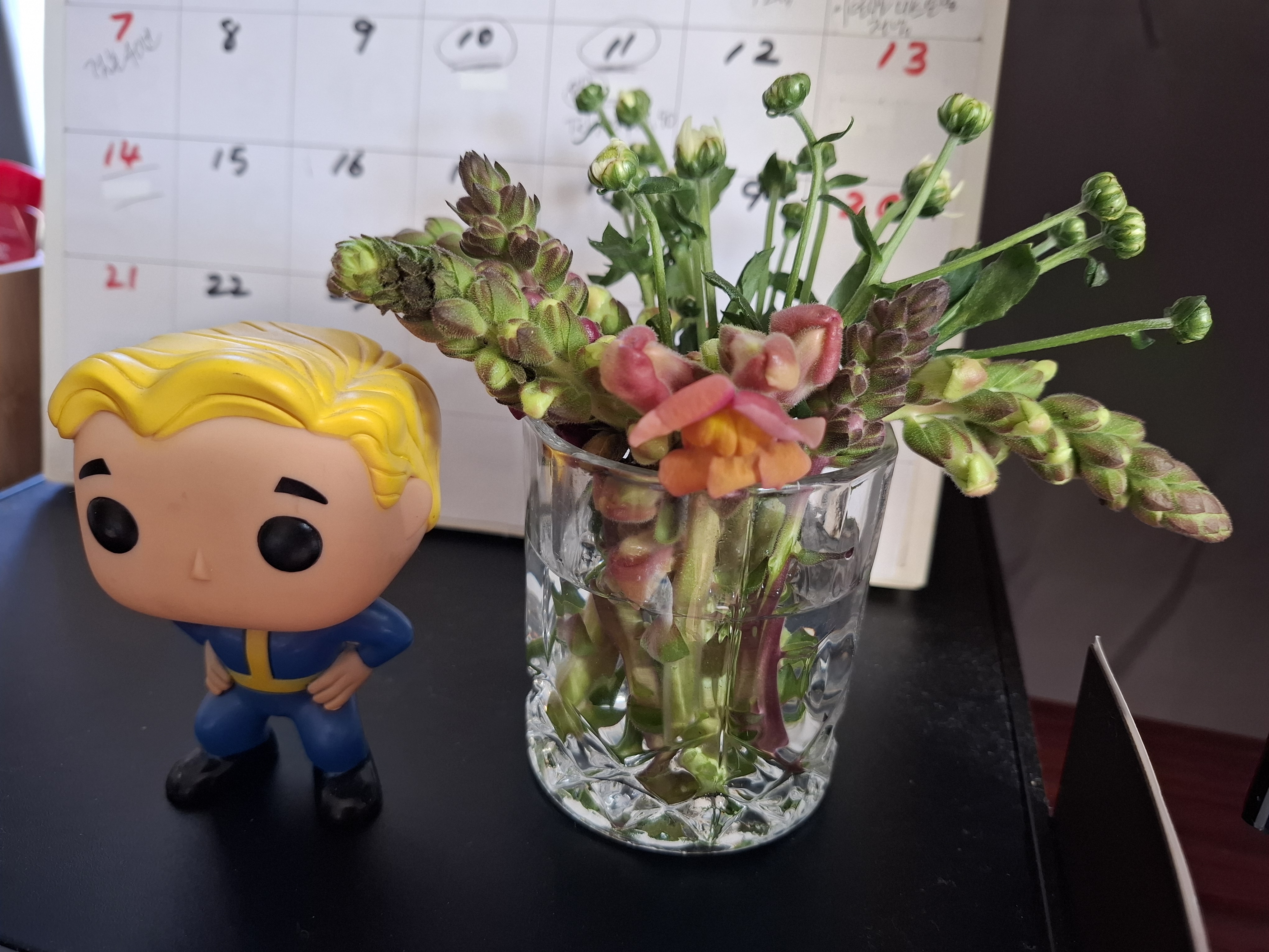 묘지에서 쓰고 남은 꽃을 컵에 꽂았다.